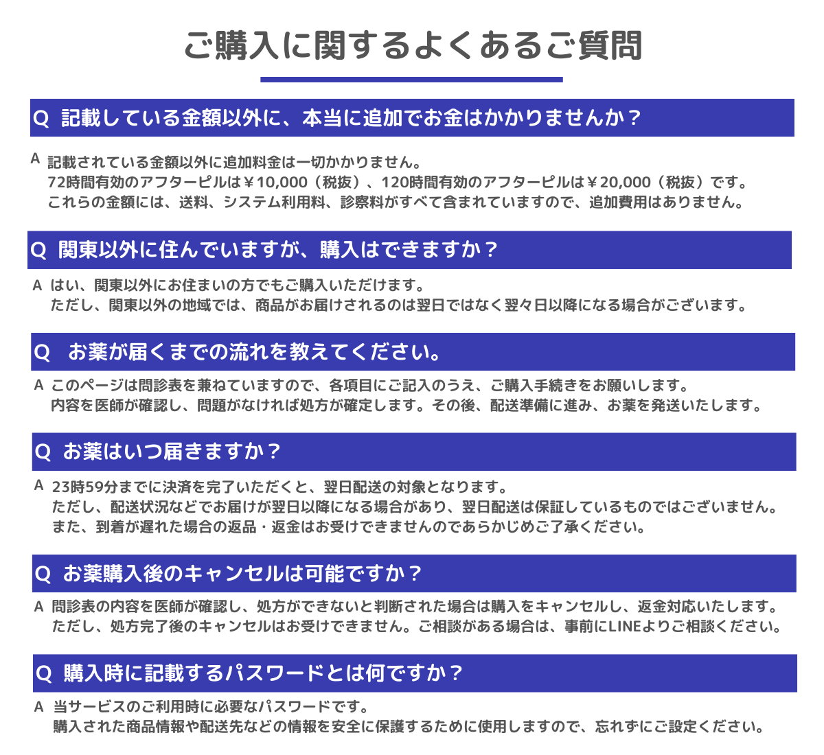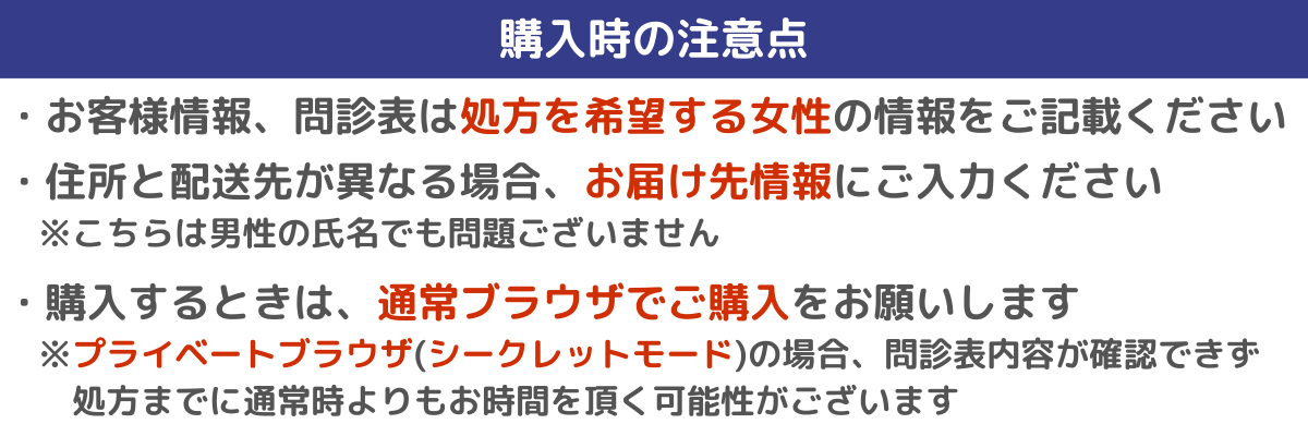 女性のみ処方することが可能です※決済は男性でも可能です 必須
